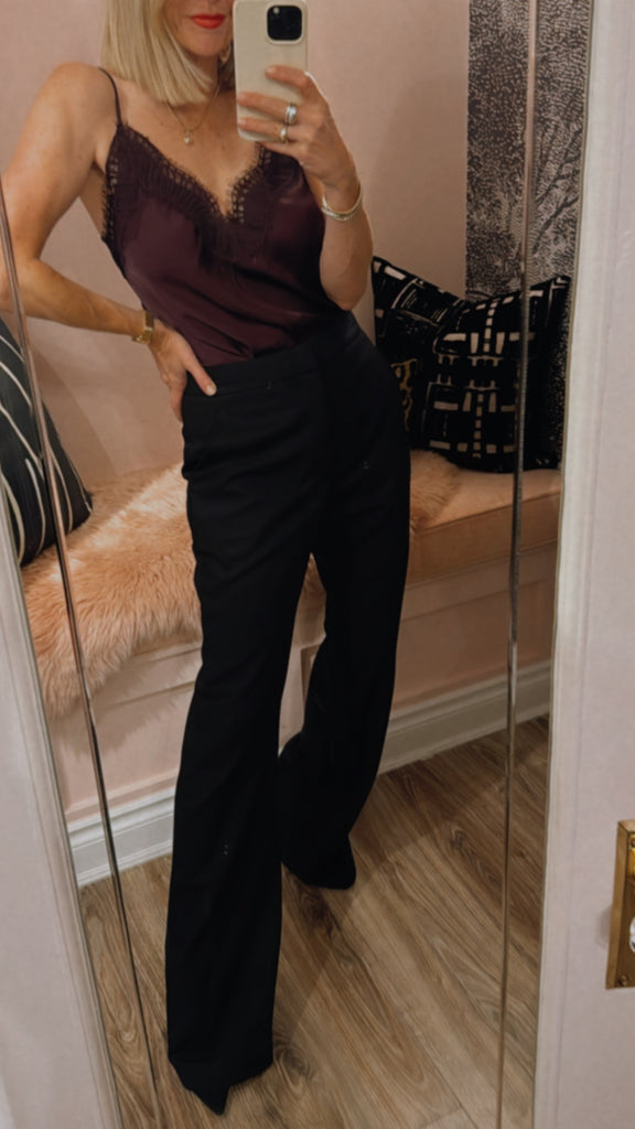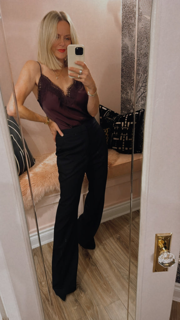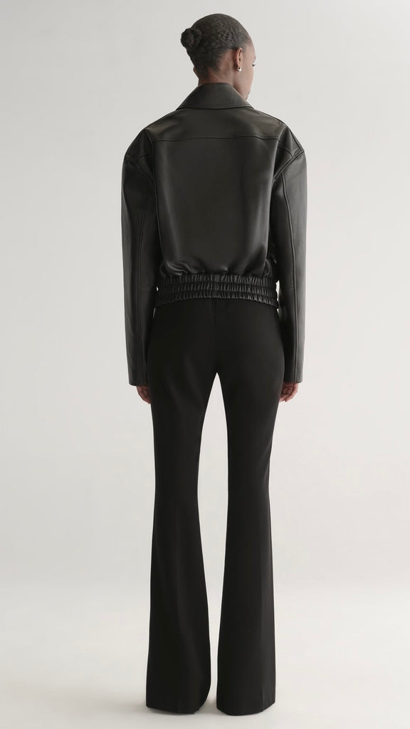 A.L.C.'s best-selling high-rise trouser returns in a new suiting twill—softly structured with a touch of stretch. The slim-through-the-thigh fit flares subtly at the hem, creating a clean, elongating silhouette suited to work, events, and beyond.