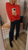 100% Polyester, in Red.