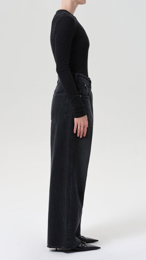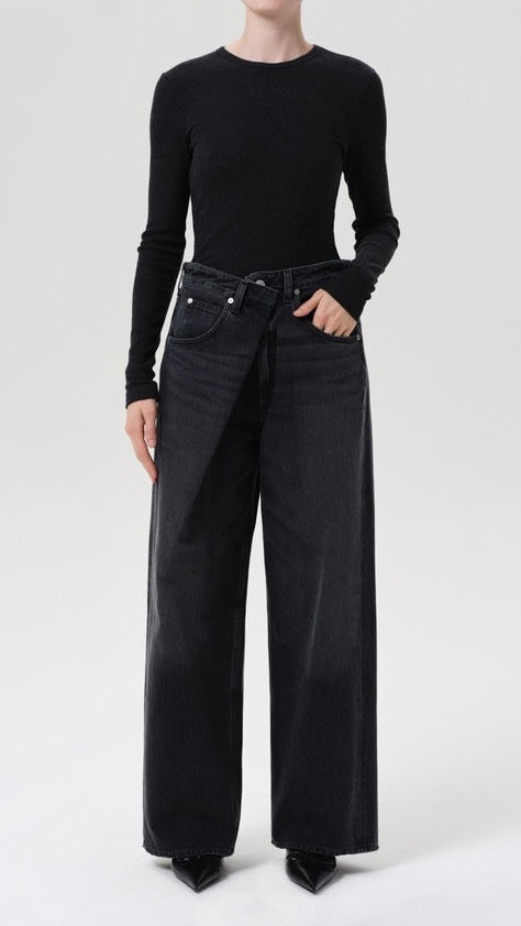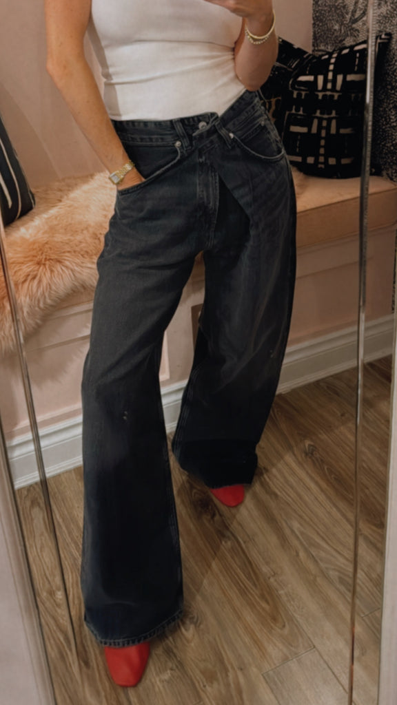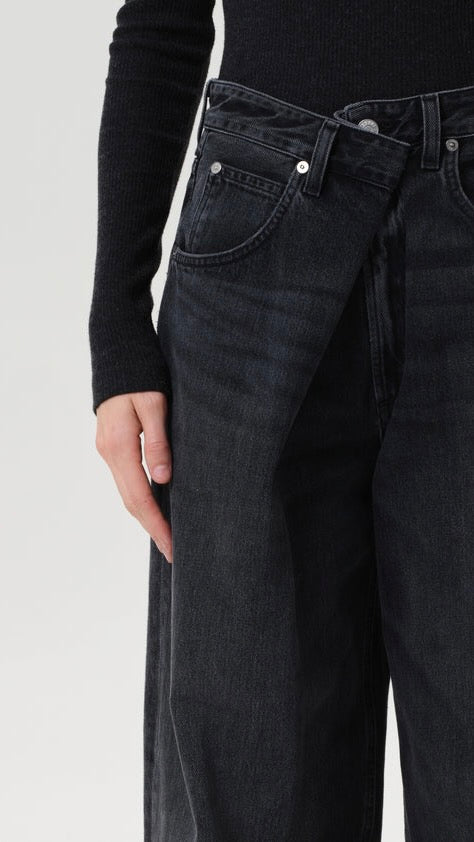 An instant best-seller, the Vana Jean makes a bold impression with it's signature fold-over waistband. Designed with a mid rise and intentionally oversized, relaxed fit, this style is crafted from rigid regenerative cotton for a soft yet structured feel. Pair it with a second-skin tank or an undone button-down for effortless impact.