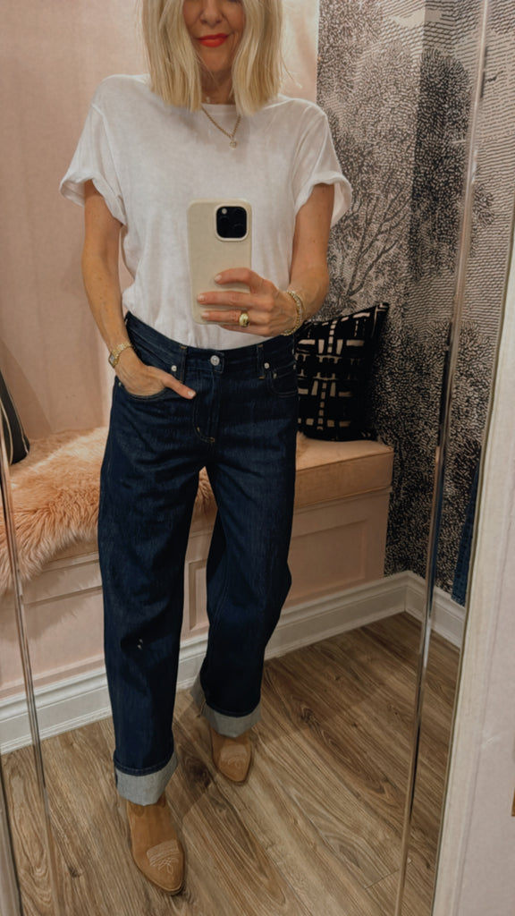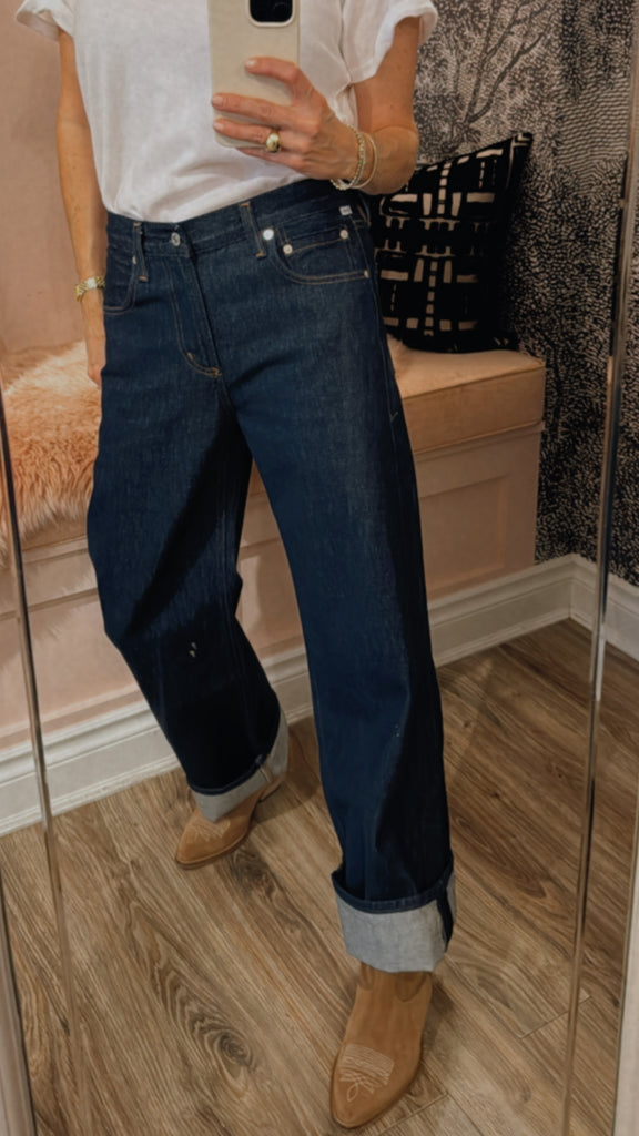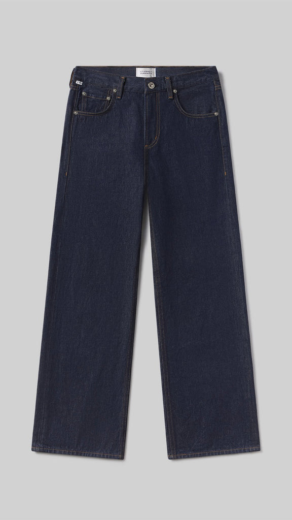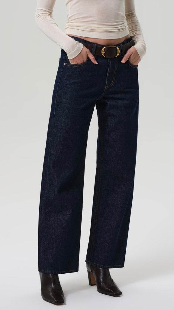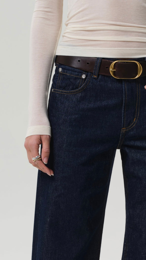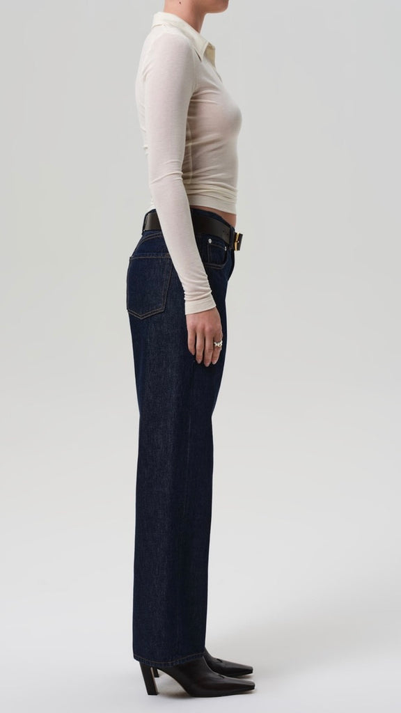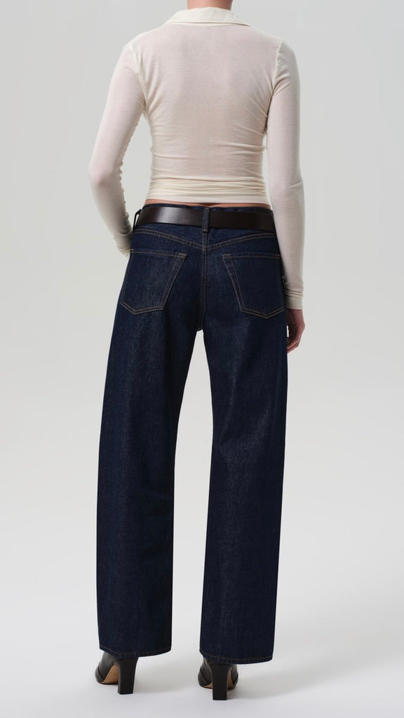 The ‘Lindz’ is a relaxed straight leg with a low rise and an effortless attitude. Crafted from rigid regenerative cotton with a soft hand, it channels a subtly undone feel. Amherst’s clean, dark rinse brings a refined edge—style with a classic button-down or oversized knit for everyday polish.