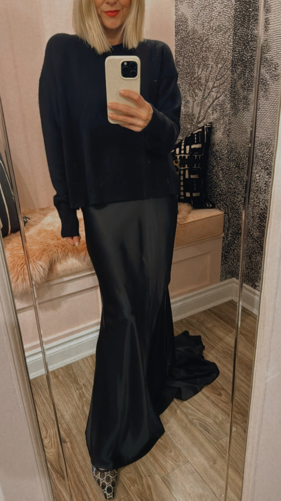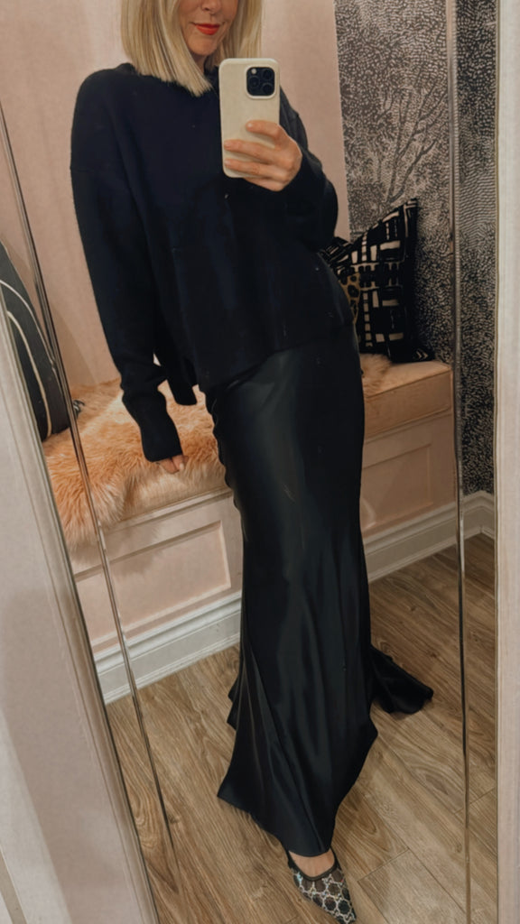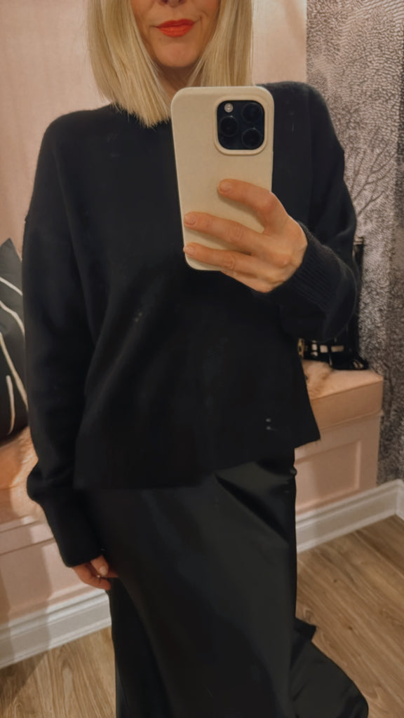 92% Cashmere, 7% Polyamide, 1% Elastane, in Black.