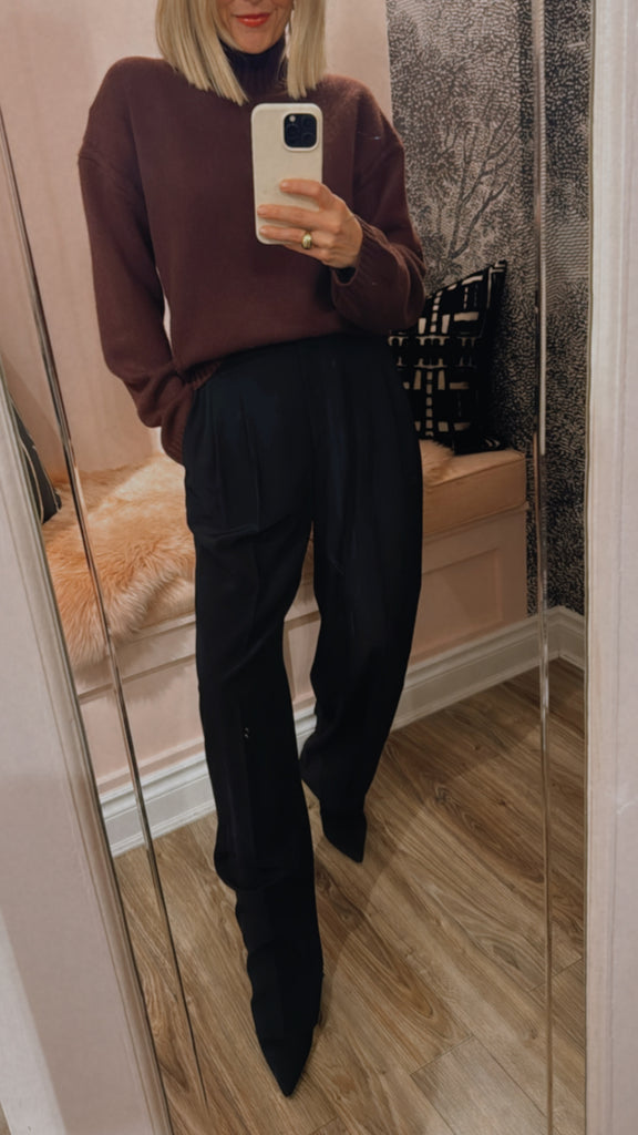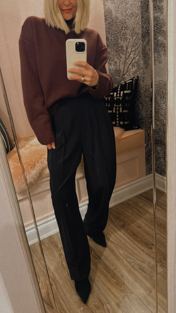 The Tarn Crepe de Soie Silk Trousers are a wide, tapered leg trouser, crafted from a fluid, lightweight silk crepe. These full-length trousers feature front pressed pleats, delivering a relaxed, tailored silhouette.
