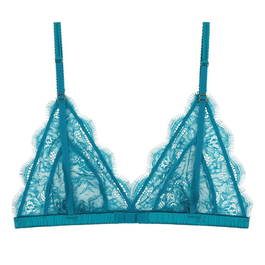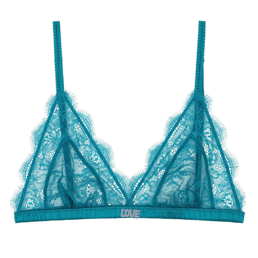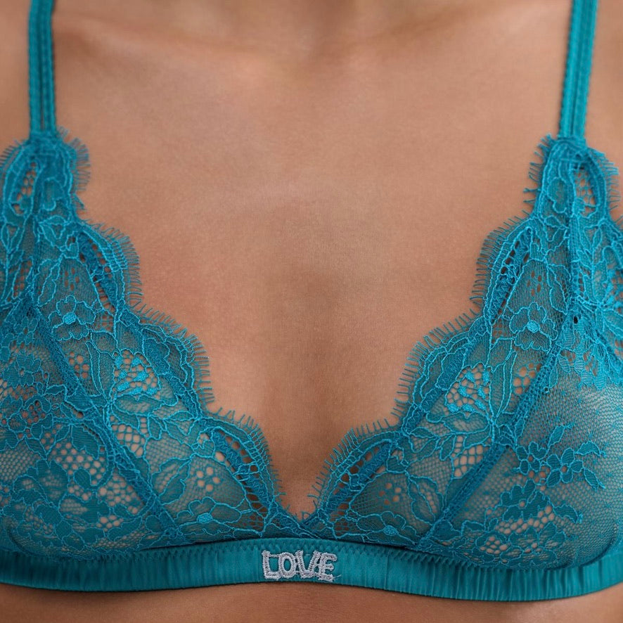 • Love Lace triangle bralette in teal blue