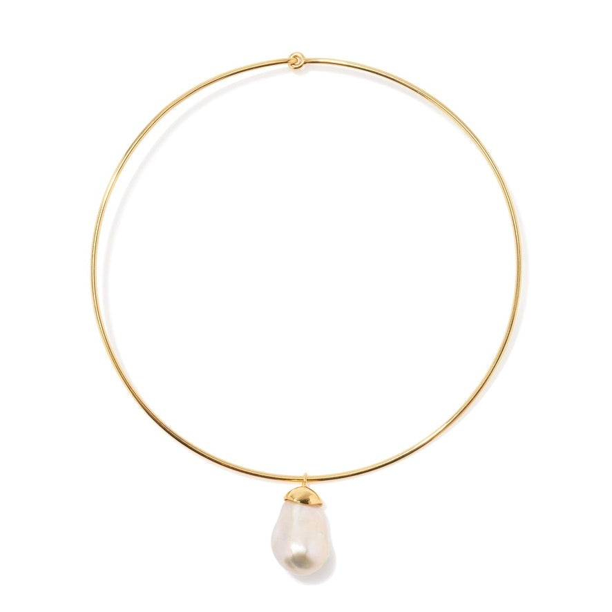 Revel in the romantic simplicity of our sleek gold-plated wire collar necklace, adorned with the prettiest freshwater pearl charm.