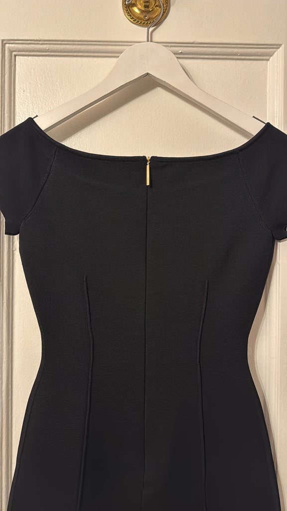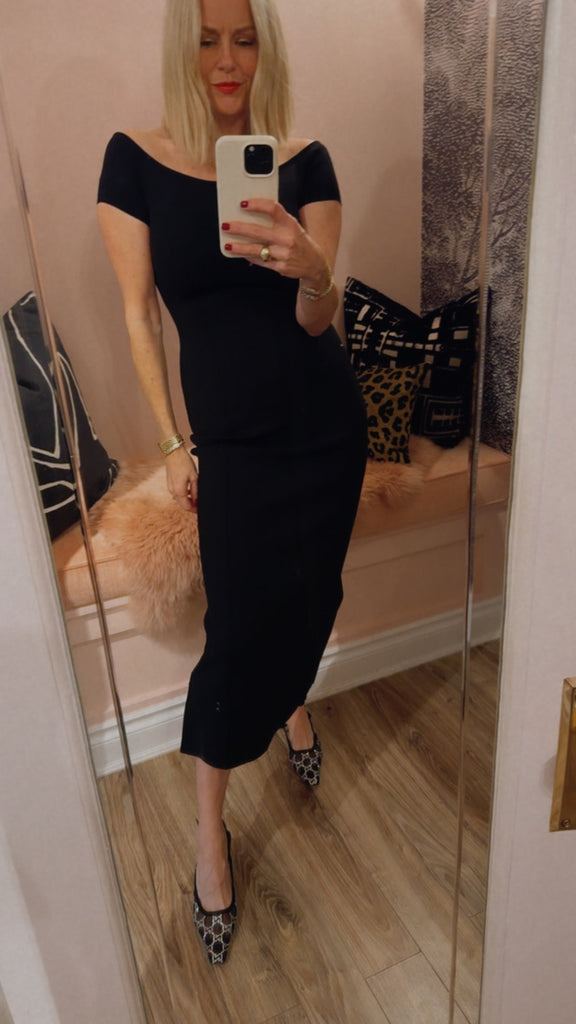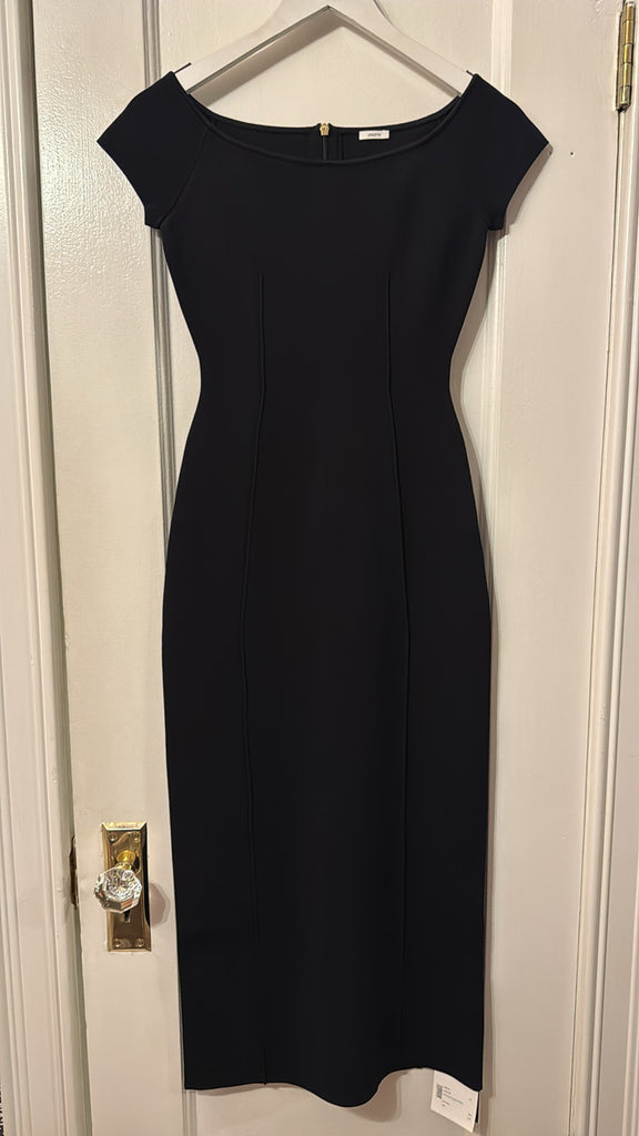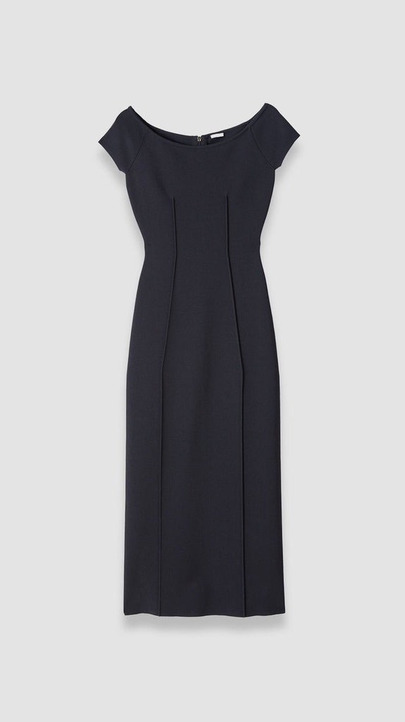 The Foin Compact Milano Knit Dress is a slim fit, ankle length dress. Crafted from a stretchy viscose blend, a compact, mid-weight knit which adapts to the shape of the body. Elegant and clean cut, it's finished with a boat neckline and a pintuck detailing down the front.