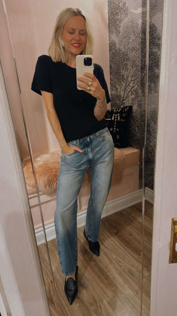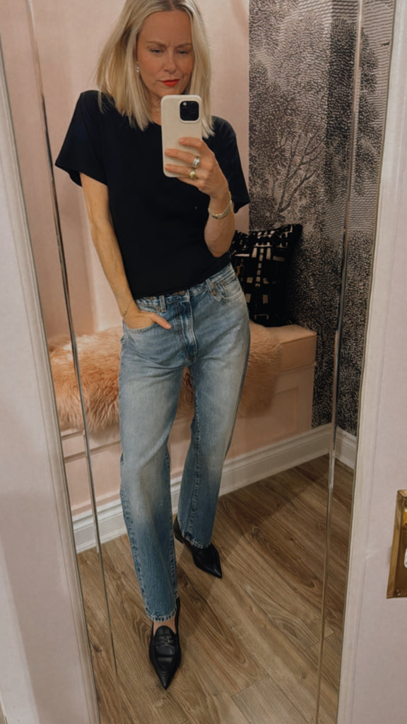 Altered R13 Boy T with angled side seams for a tapered tight waisted look. Built with Japanese cotton cashmere blend fabric.