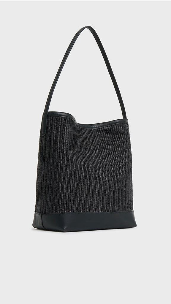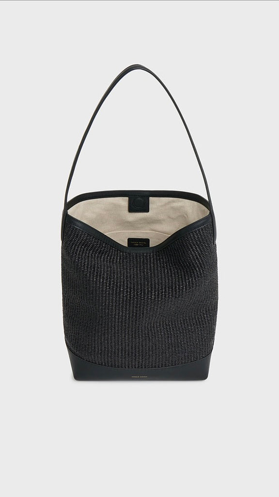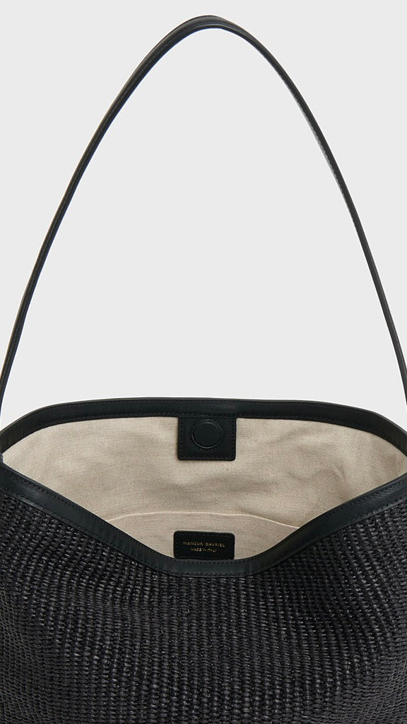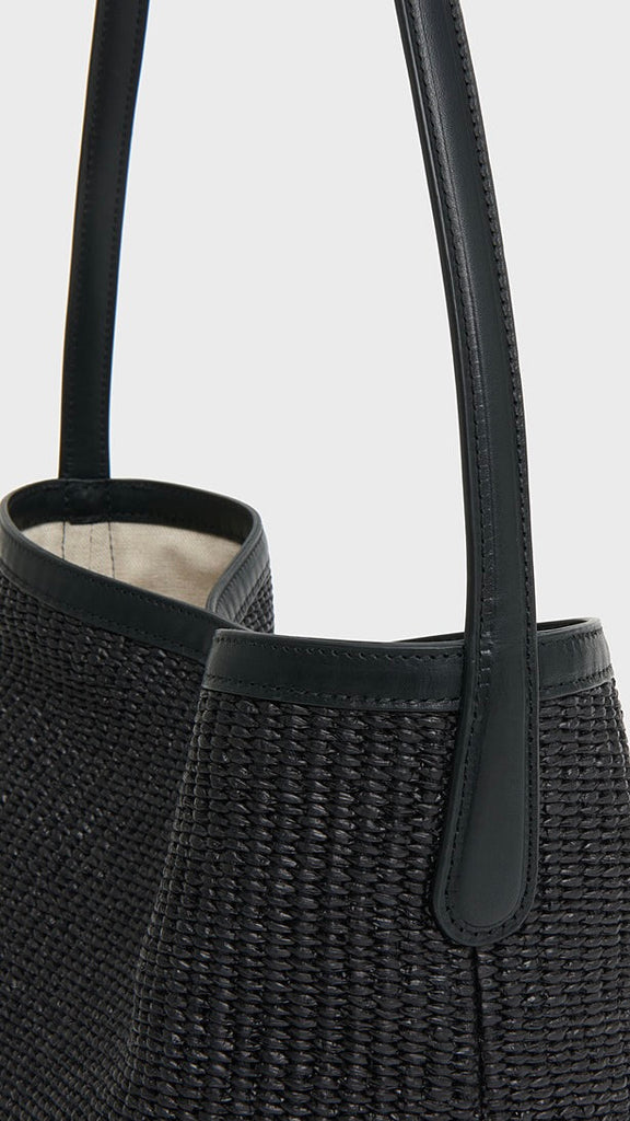 Crafted from soft Italian raffia with elongated handles, an interior pocket, and a secure magnetic closure, the Everyday Cabas is spacious enough to fit a 14" laptop, notebook or tablet.