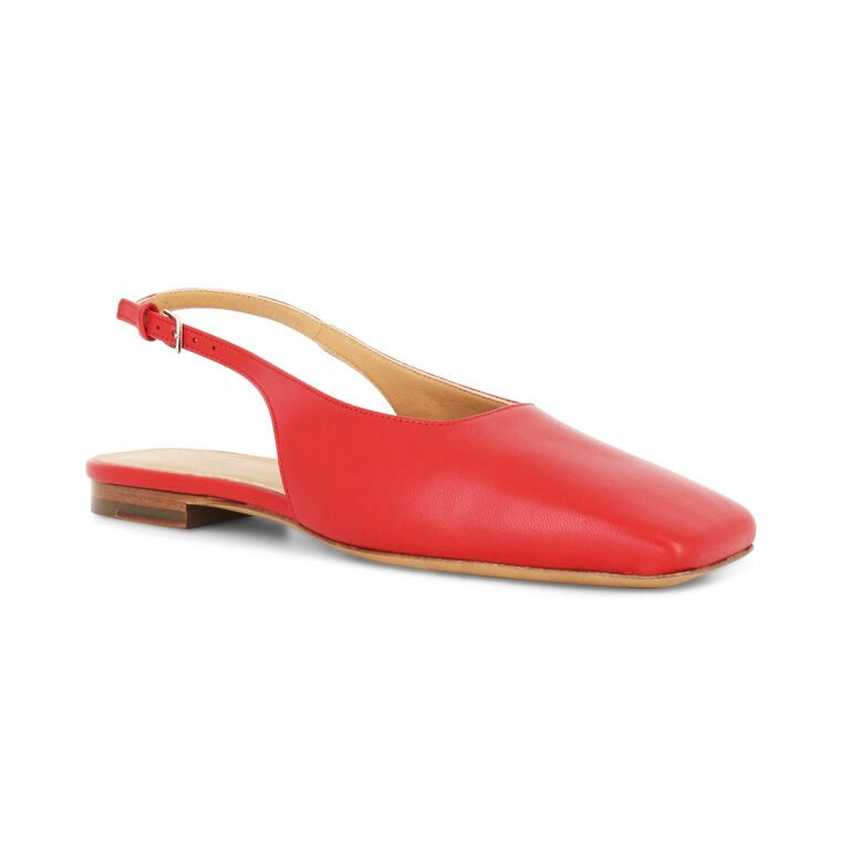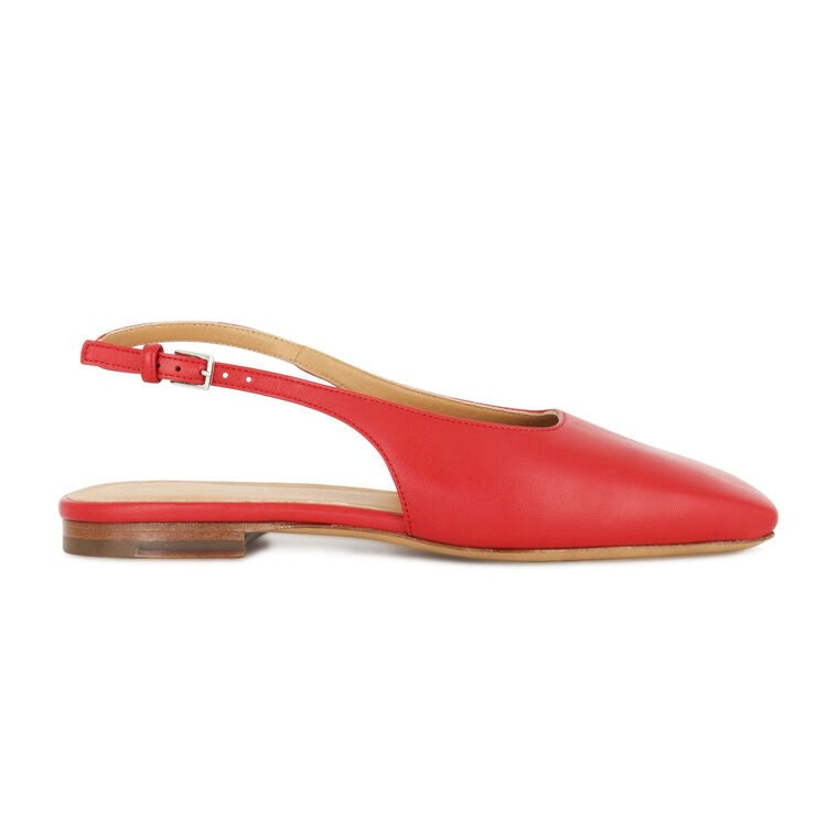 Slingback flats made of supple Italian Lambskin in a fiery red colour.