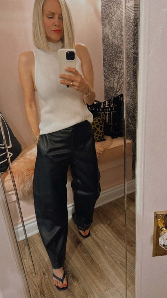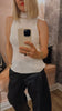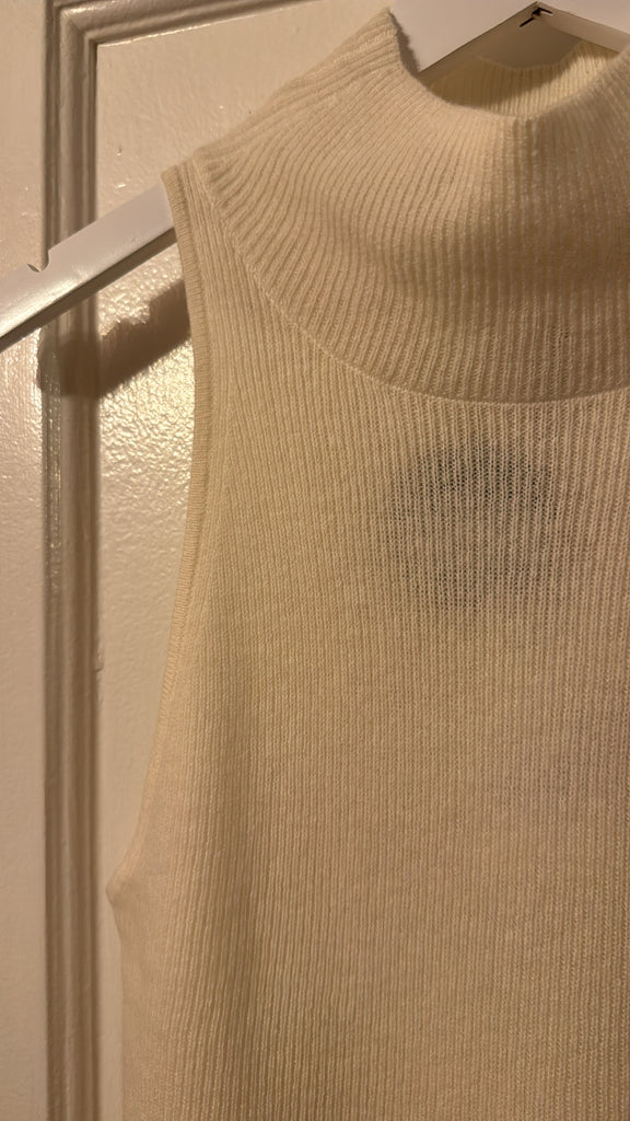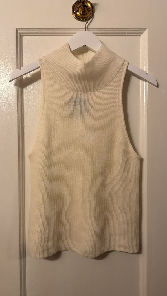 The Cashmere Blend Top is a lightweight knit designed with a turtleneck and subtle racerback cut. Featuring a ribbed texture and lower-hip length, the Cashmere Blend Top is a refined staple for effortless layering.
