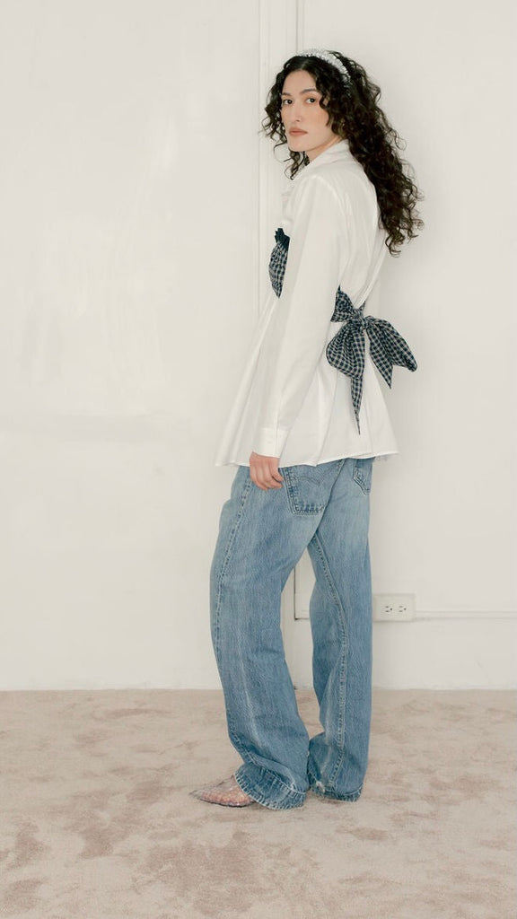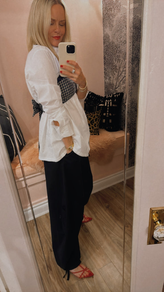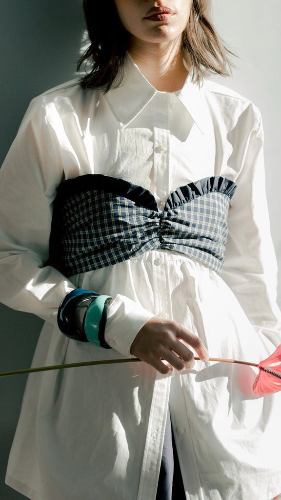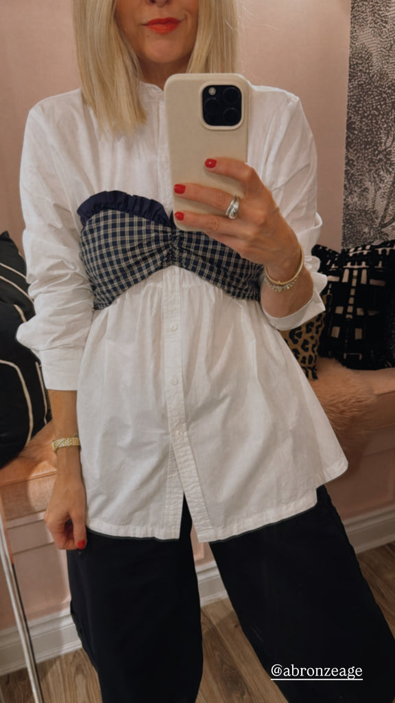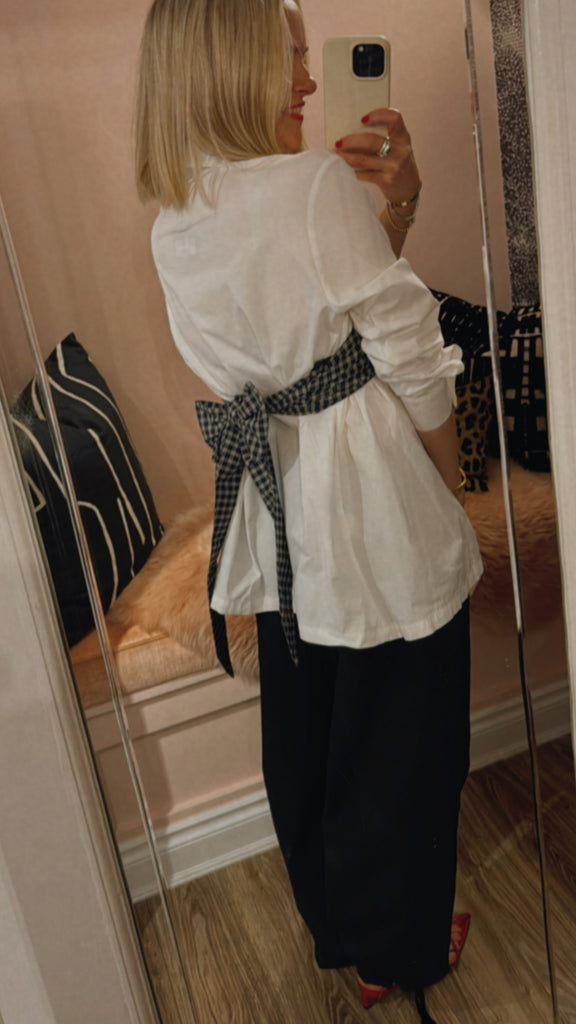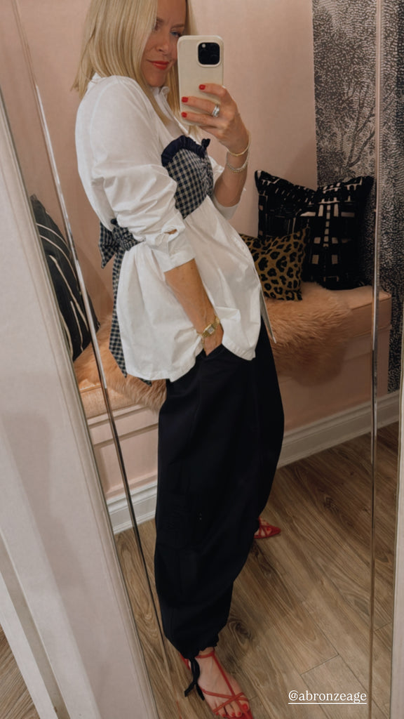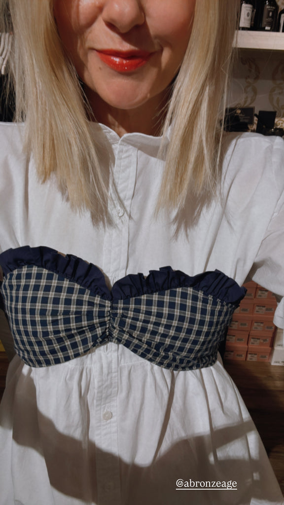 - Blouse fits loose and adjustable bandeau gives a custom fit once tied