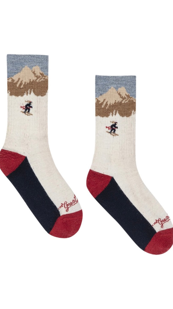 Designed for all day comfort and knit with a classic mountain landscape from luxurious merino wool yarn. Featuring a terry knit footbed that provides cushion in every step.