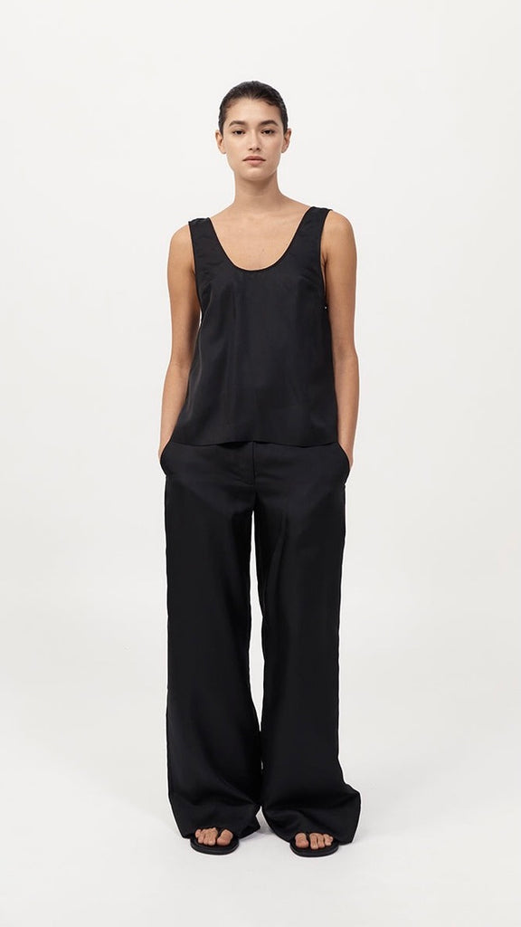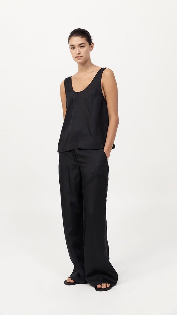 The Silk Twill Pants offer a relaxed yet tailored silhouette. Crafted from fluid silk twill, they feature a mid-rise waist and discreet pocket detailing. The straight-slim leg delivers an effortless profile suited to both structured and relaxed pairings. Style with the the Jordan Button Up Top for a seamless ensemble.