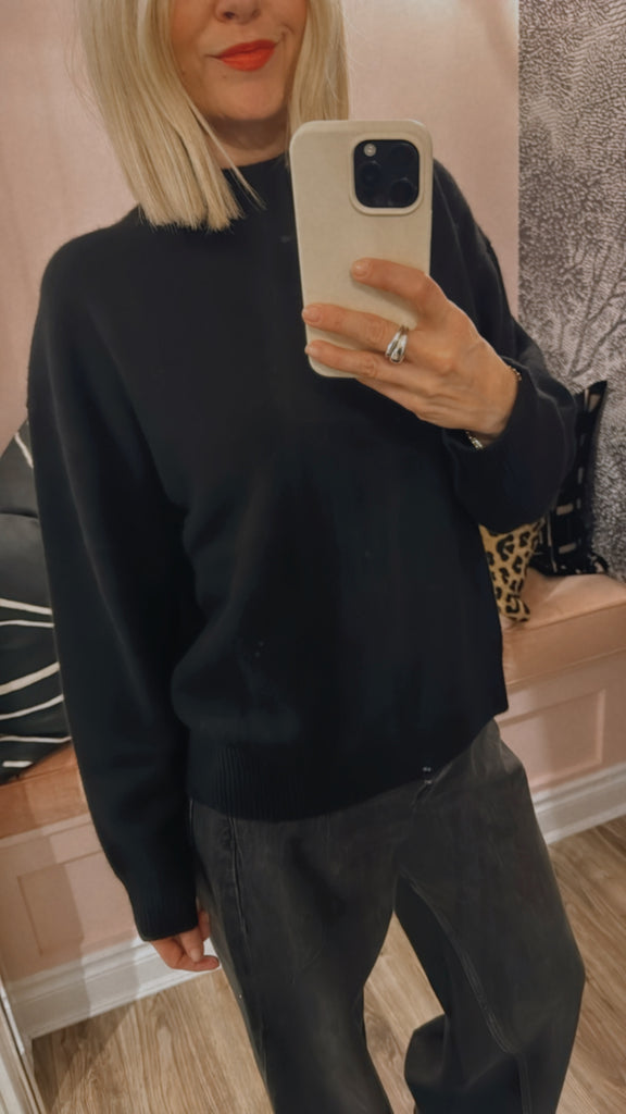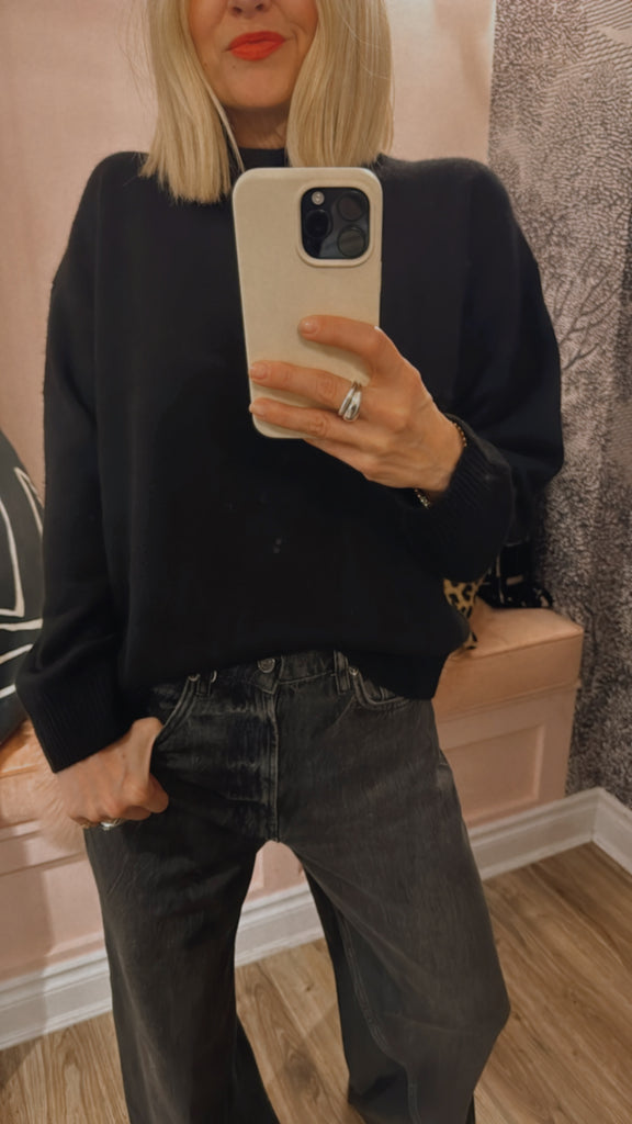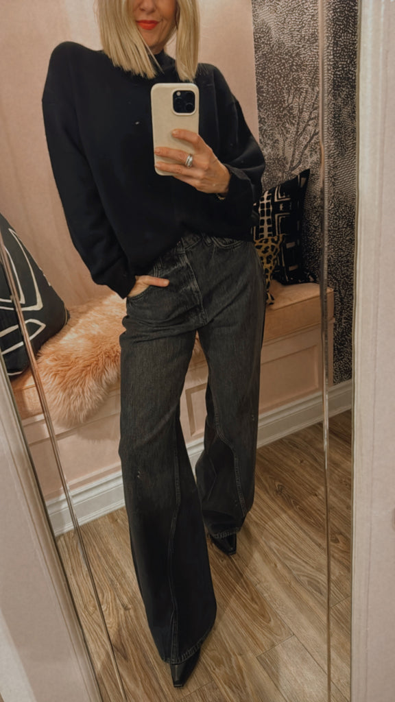 The Lee Crew Sweater is cut for a boxy, oversized fit with long sleeves. Take your true size.