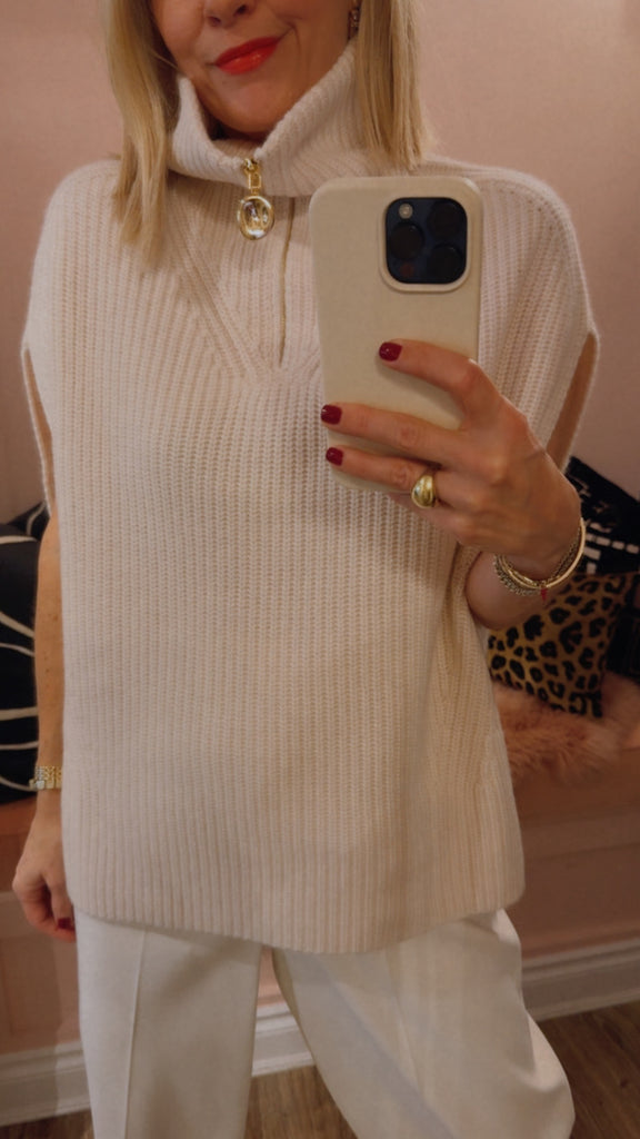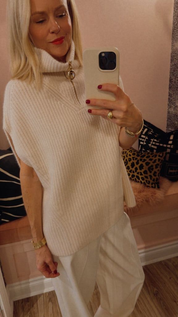 The Raffet Fisherman Rib Cashmere Vest is a relaxed fit, high neck vest, crafted from a blend of cashmere and wool. This cosy style is knitted in a half cardigan rib, a refined variation of the classic fisherman rib. It delivers a plush texture and maximum warmth.