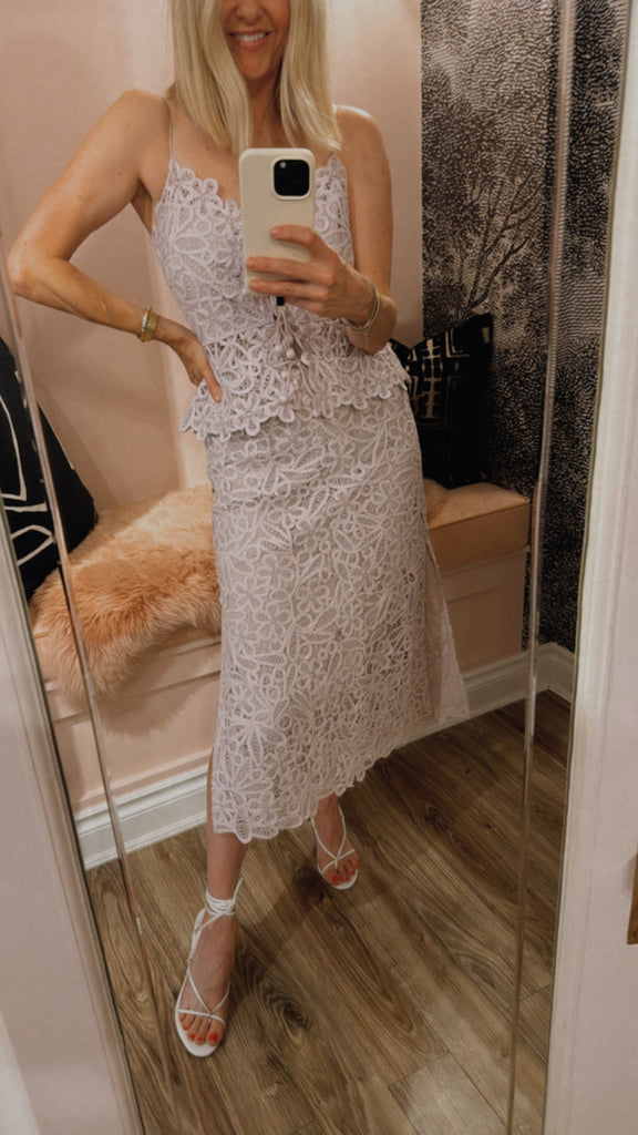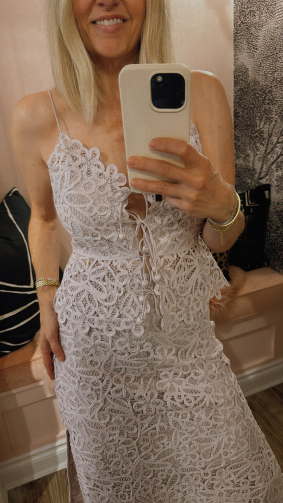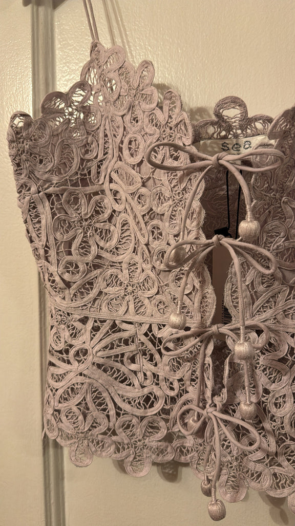 The Iyla Camisole is made of an openwork soutache embroidery and features a delicate tie front.