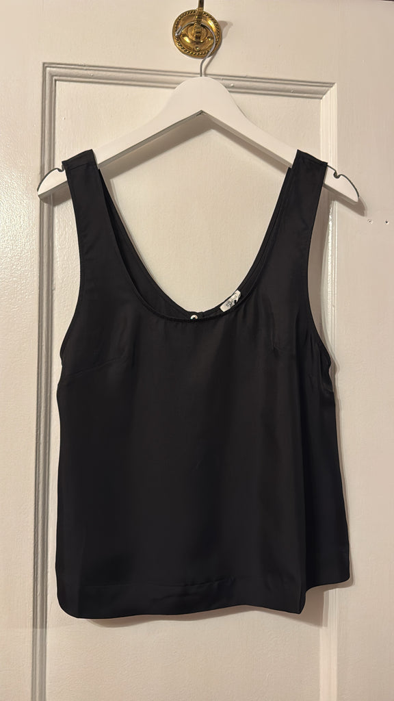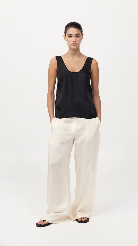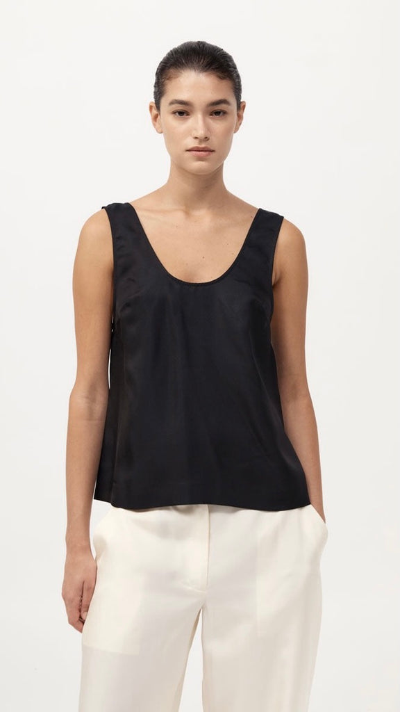 The Jordan Button Up Top is a minimal silhouette elevated by its subtle detailing. Crafted in silk twill, it features a low scoop neckline and a buttoned split at the back for an athletic touch. The Jordan Button Up Top is a refined piece for elevated day-to-evening wear.