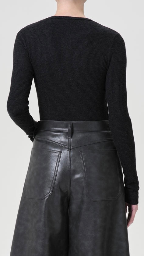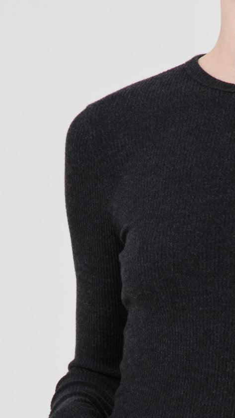 The Delphi Slim Tee is a fitted long sleeve crewneck with a flattering ribbed texture. Crafted from midweight fabric, it offers a sleek, streamlined fit ideal for layering or wearing solo.